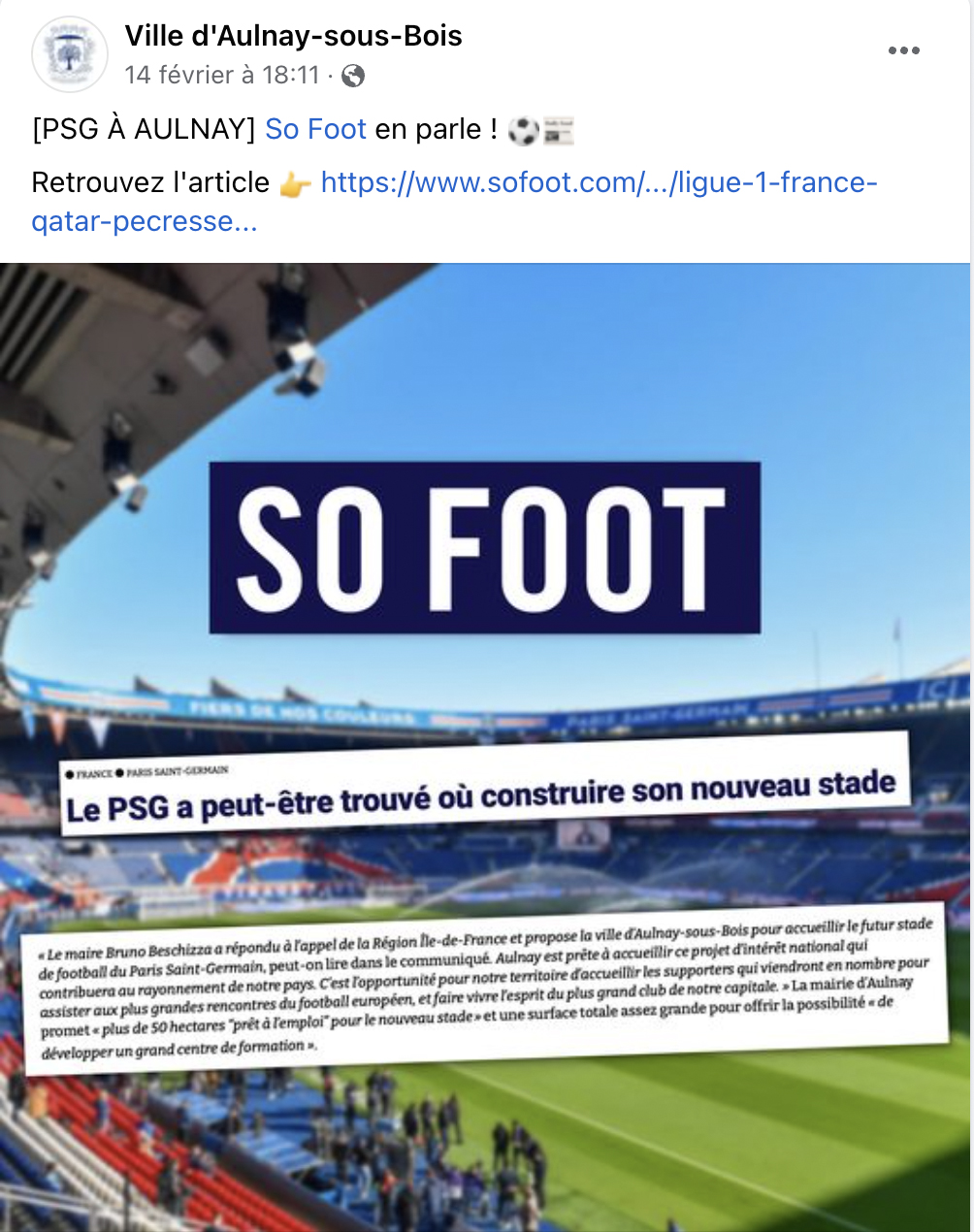 Vous êtes ici : Accueil > Actualités > Aulnay-sous-Bois candidate pour accueillir le Paris Saint-Germain ! Aulnay-sous-Bois candidate pour accueillir le Paris Saint-Germain ! Publié le lundi 17 mars 2025 >> Vidéo : Le PSG bientôt à Aulnay ? La Ville a été la première à se positionner pour accueillir le PSG en cas de départ du Parc des Princes et de construction d’un nouveau stade. Le quartier Val Francilia constituerait un bel écrin pour la prestigieuse équipe. Le président du PSG, Nasser Al-Khelaïfi, a annoncé son intention de vouloir quitter le parc des Princes, pour pouvoir mener à bien son projet d’agrandissement, de 60 000 places contre environ 48 000 actuellement. Valérie Pécresse, présidente de la Région Île-de-France, a assuré vouloir aider le club à trouver un nouveau stade. Bruno Beschizza, a répondu favorablement à son appel dès février 2024, le Maire a proposé le nom de la ville d’Aulnay-sous-Bois pour accueillir le futur stade de football du Paris Saint-Germain au sein du projet Val Francilia. Val Francilia, ce sont 300 hectares d’aménagement, dont une emprise de plus de 50 hectares "prêts à l'emploi" composé de terres déjà artificialisées et sans voisinage immédiat. À proximité des aéroports de Paris Le Bourget et Paris Roissy Charles de Gaulle, le site est accessible par les autoroutes A1, A3 et A104. Il sera également desservi dès 2027 par la ligne 16 du futur métro grâce à la future gare du Grand Paris Express "Aulnay - Val Francilia". « Aulnay-sous-Bois offre une possibilité d’implantation unique en Île-de-France. J'essaye de construire le dossier le plus objectif possible : il s'agit d'une candidature technique, pas politique. Notre ville a tous les atouts pour continuer d’écrire la grande histoire du Paris Saint-Germain », a déclaré le Maire, Bruno Beschizza. LA PRESSE EN PARLE... Partager Partager sur FacebookPartager sur TwitterPartager sur Google+ImprimerEnvoyer à un ami Retour à la liste