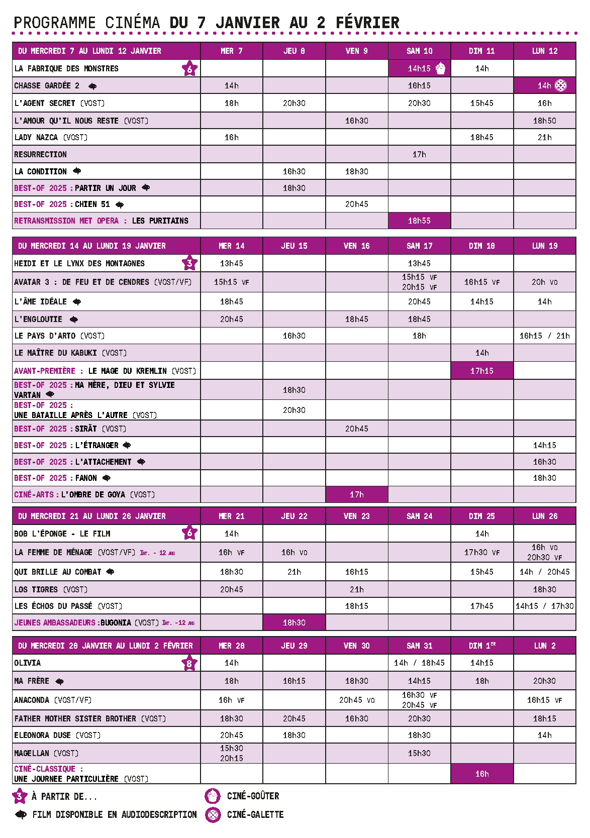 Cinéma Vous êtes ici : Accueil > Mes loisirs > Culture > Théâtre et Cinéma Jacques Prévert > Cinéma Programme cinéma du 7 janvier au 2 février Agenda Cinéma Ciné-Gazette du 7 janvier au 2 février Billetterie
